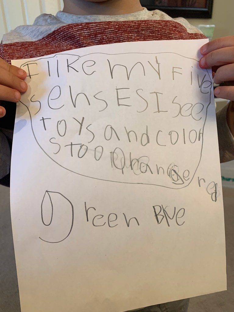 He had so much fun with this mini unit that he decided to write a poem about his senses the next day!